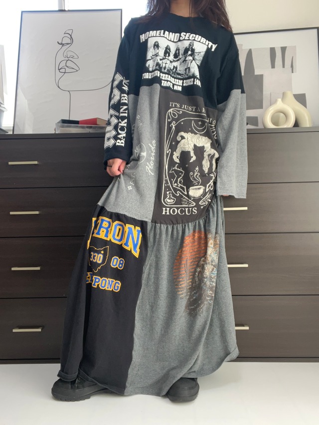 魅力あふれるブラックカラーが特徴的な「ドッキングワンピース」が登場!引き締まったシルエットと鮮やかなロゴが絶妙にマッチし、一着でスタイリッシュな印象を与えてくれます。モデル身長155㎝の方がダボっと着る感じで、丈感は少し長めになります。リラックスした雰囲気を演出できます。カジュアルコーデにもぴったりなアイテムです! □Size(平置き) 身幅:53㎝ 袖丈:59㎝ 総丈:139㎝ 着用モデルー155㎝ ※Guideをご覧いただいた上でご購入よろしくお願い致します。