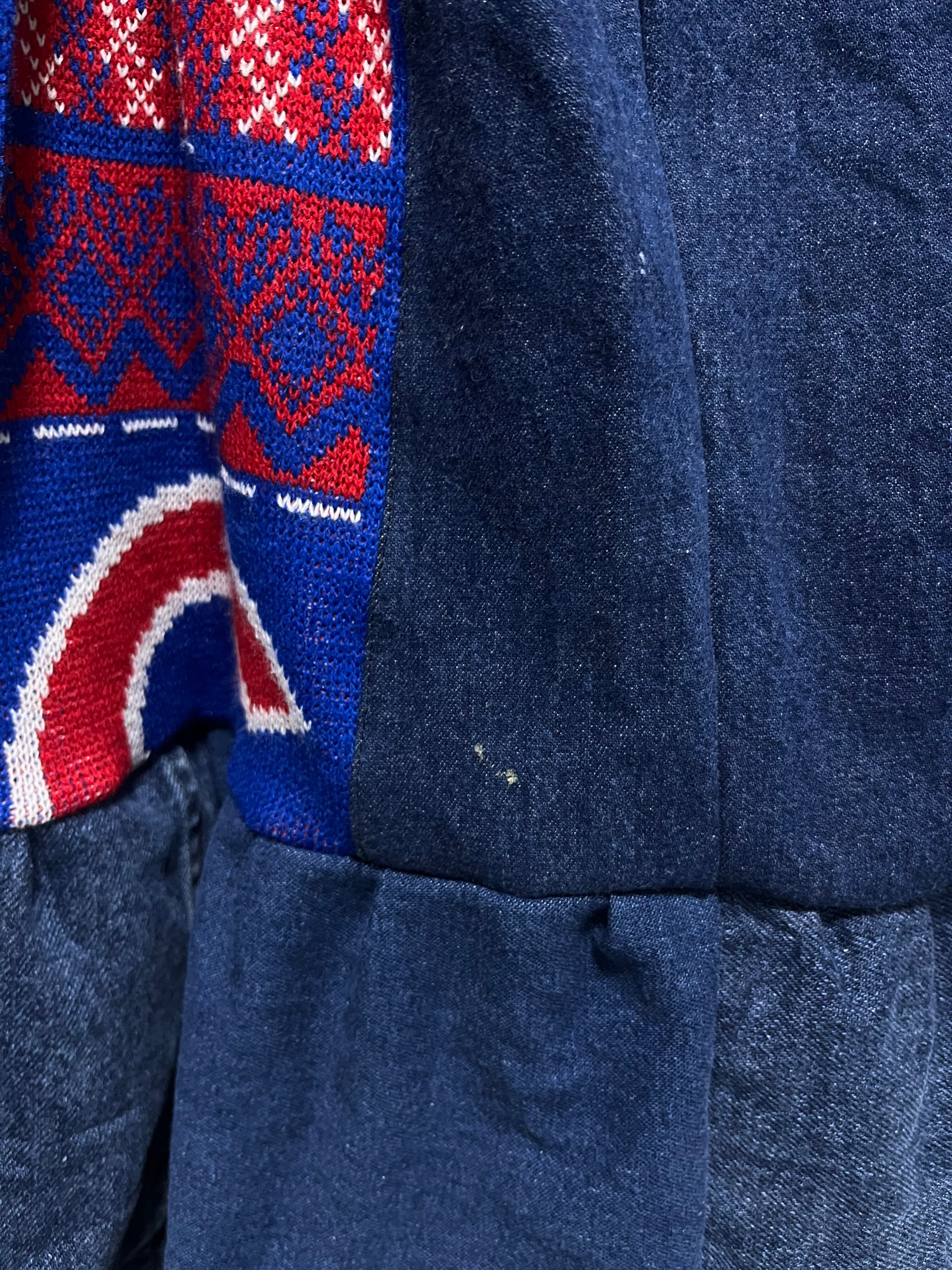 マフラーとデニムが見事にドッキングした「マフラードッキングスカート」は、どんなトップスとも相性抜群のアイテムです!デニムのフリルがポイントになっており、シンプルになりがちなコーディネートに華やかさをプラスします。ウエストは広めのデザインで、紐調整が可能なので、着心地も快適。カジュアルな日常使いから特別なシーンまで、幅広く活躍すること間違いなし!暖かさとおしゃれを両立させたこのスカートを、ぜひあなたのワードローブに加えてみてください。