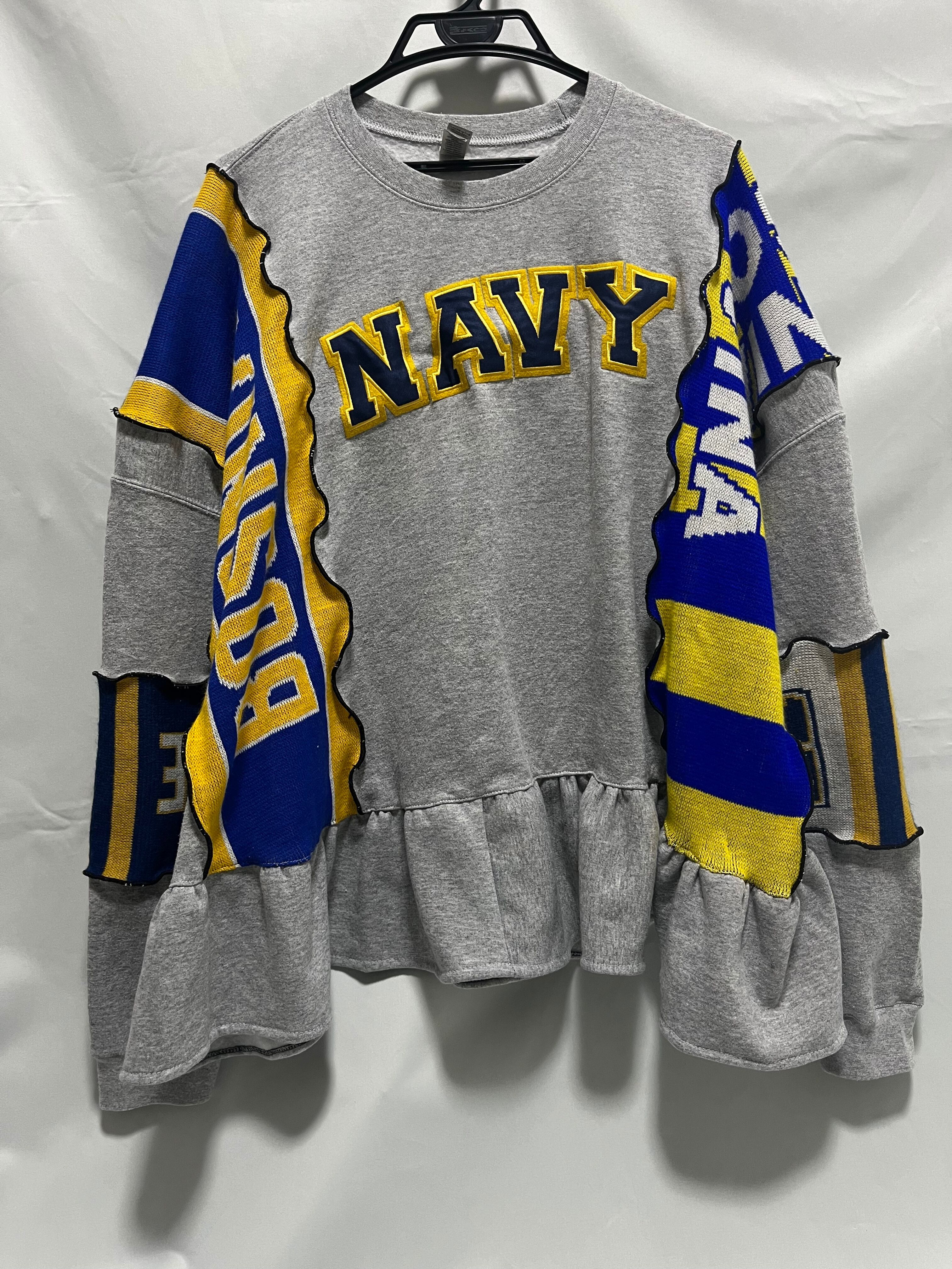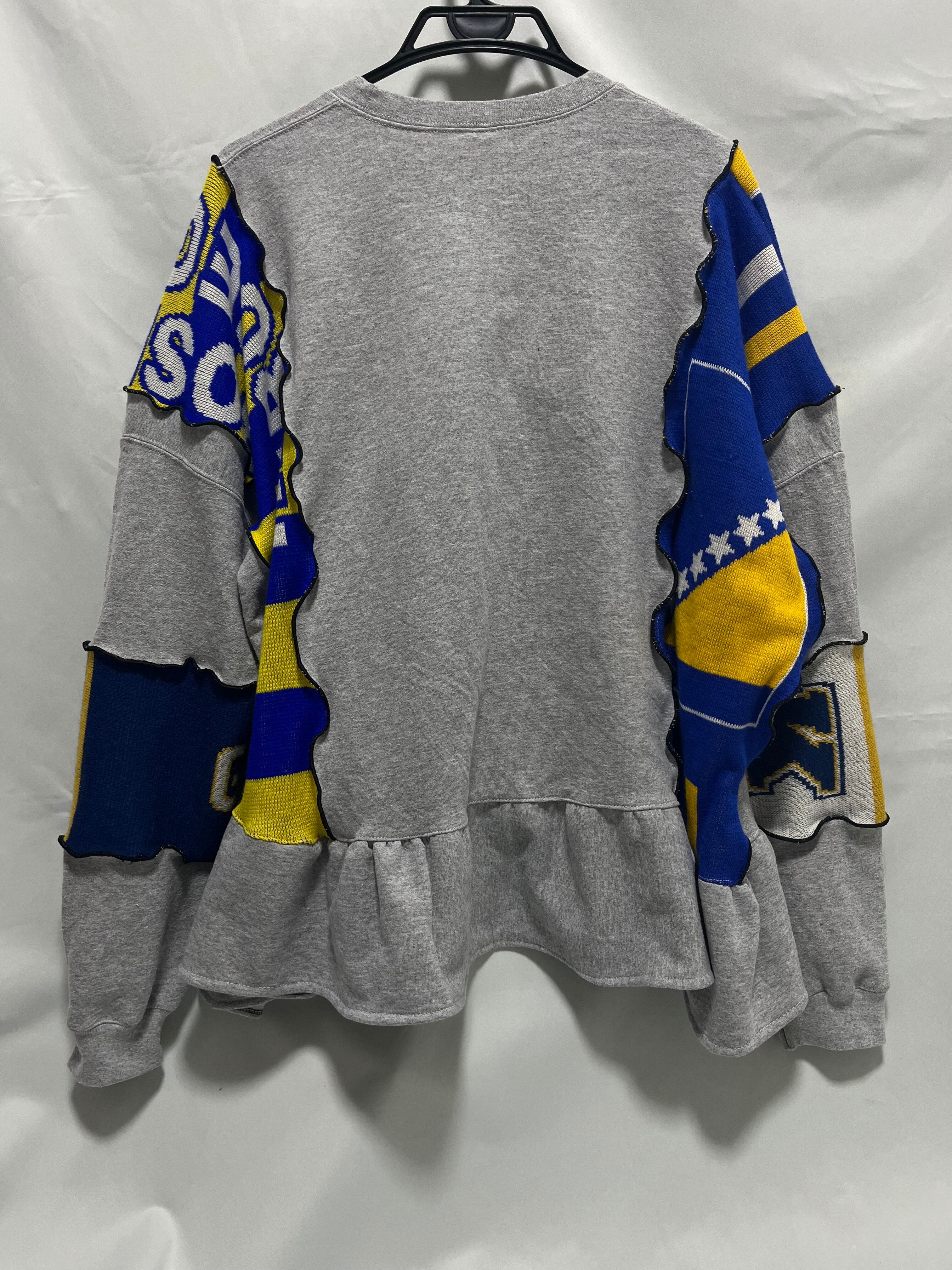 BIG mellow tops(フリル)は、スポーツマフラーをスウェットにドッキングさせた新しいスタイルが魅力の一着です。mellow加工によって個性的な風合いを実現し、身幅が広いデザインがゆったりとした着心地を提供します。リラックスした印象を持ちながら、カジュアルシーンでも特別なお出かけにもぴったり!どんなコーディネートにも合わせやすく、季節を問わず活躍するアイテムです。