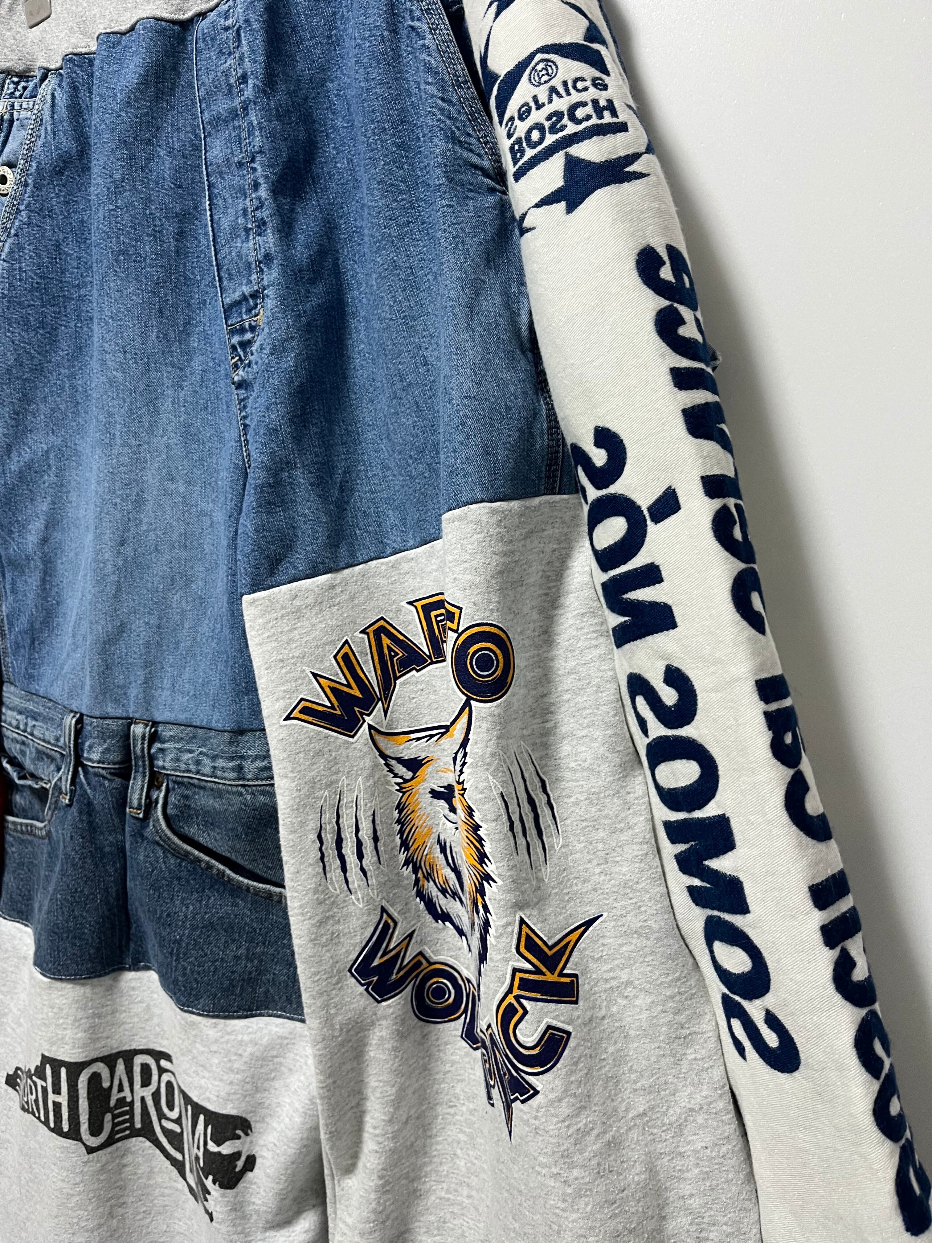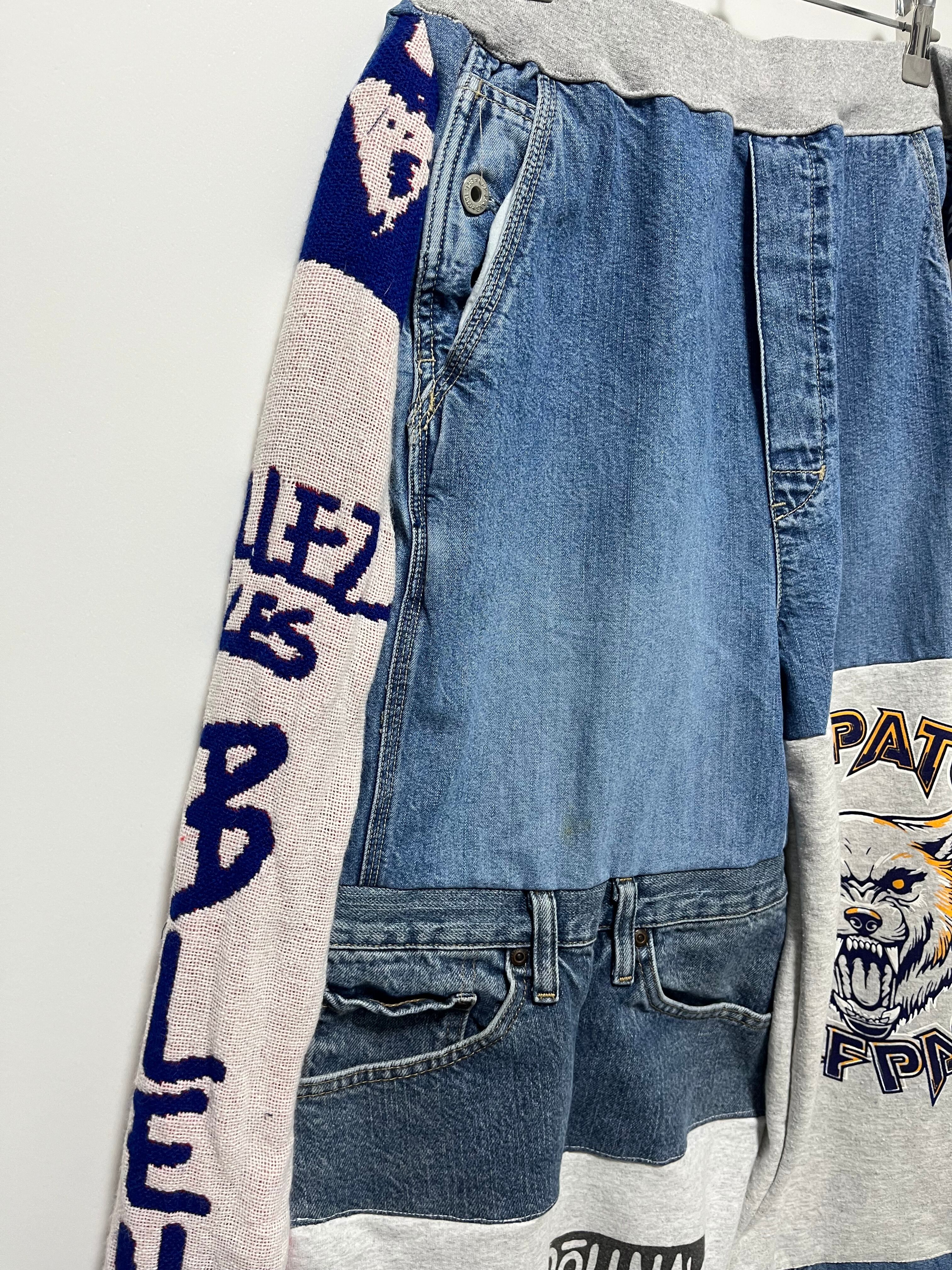 再リメイクしたボトムスにマフラーをドッキングしたデザインが特徴で、よりゆったりとした印象を与えます。ワイドパンツのような雰囲気は、カジュアルさとスタイリッシュさを兼ね備えた魅力的なアイテムです。ユニセックスで楽しめるため、男女問わず様々なおしゃれシーンで活用できます。リラックスしたい日常からお出かけスタイルまで、あらゆるシーンにフィットすること間違いなしの一着です!この機会にぜひ手に入れて、自分だけのスタイルを楽しんでください!