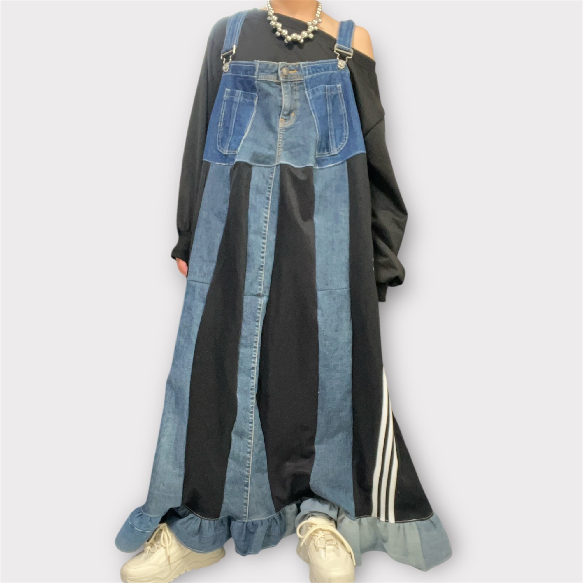 デニムとジャージのドッキングデザインが魅力的で、ボリューム感のあるシルエットとフリルがフェミニンさを演出します。カジュアルなスタイルにはぴったりのアイテムで、普段使いはもちろん、特別なお出かけにも大活躍!このオーバーオールワンピースを使って、あなたらしいコーディネートを楽しんでみてください!
