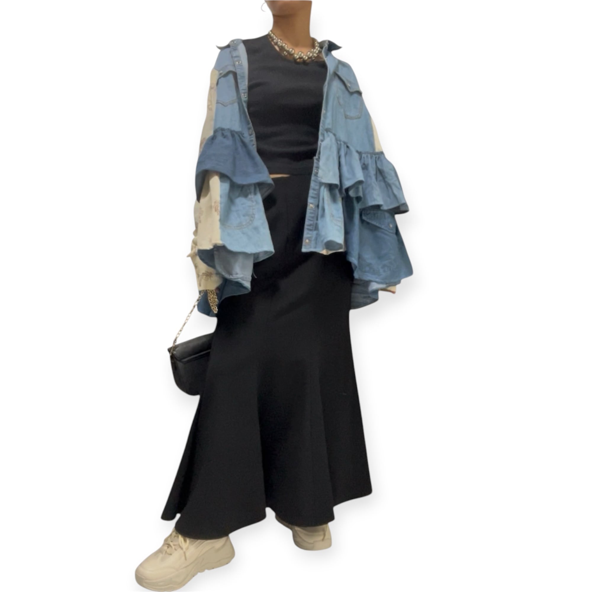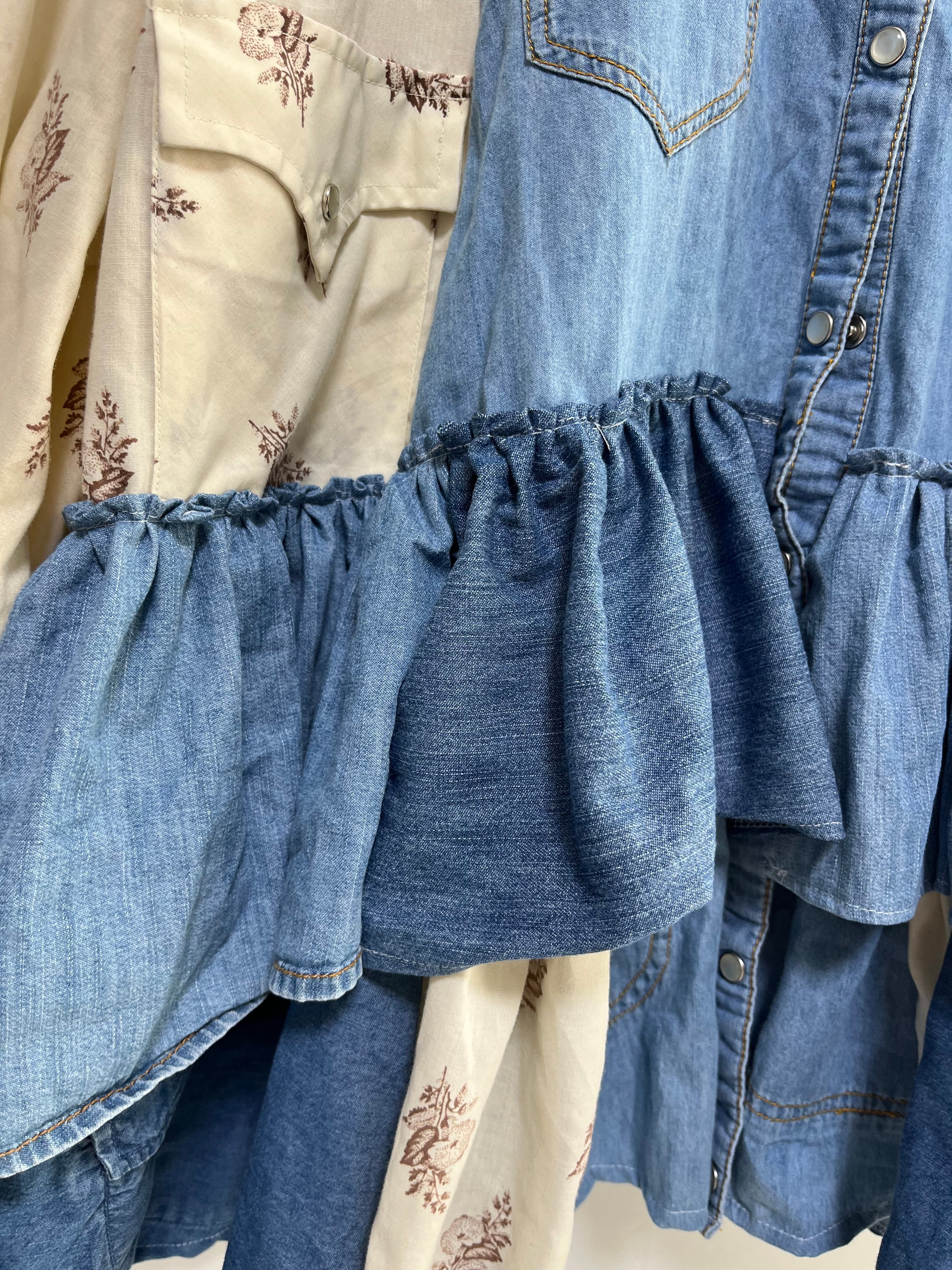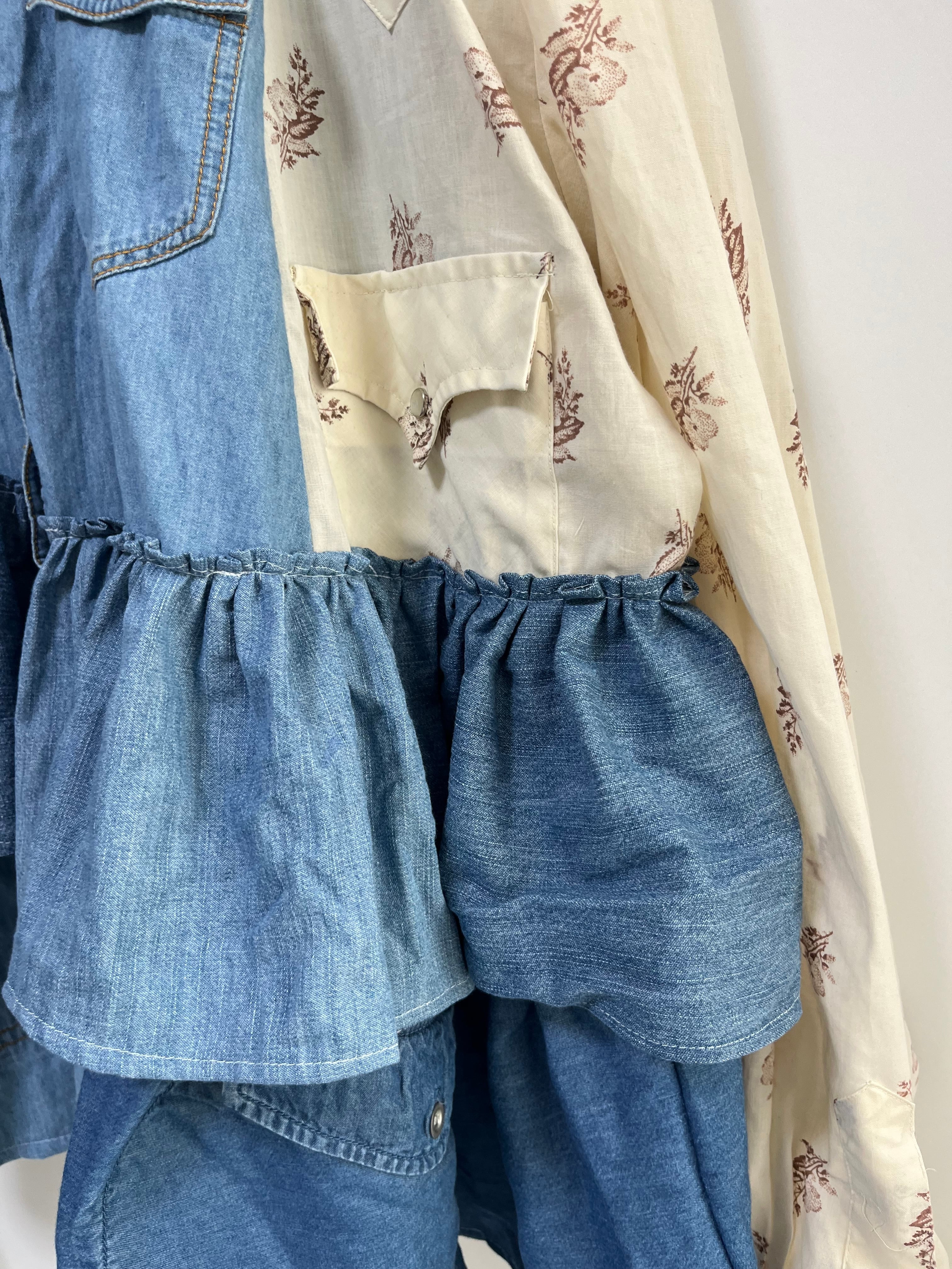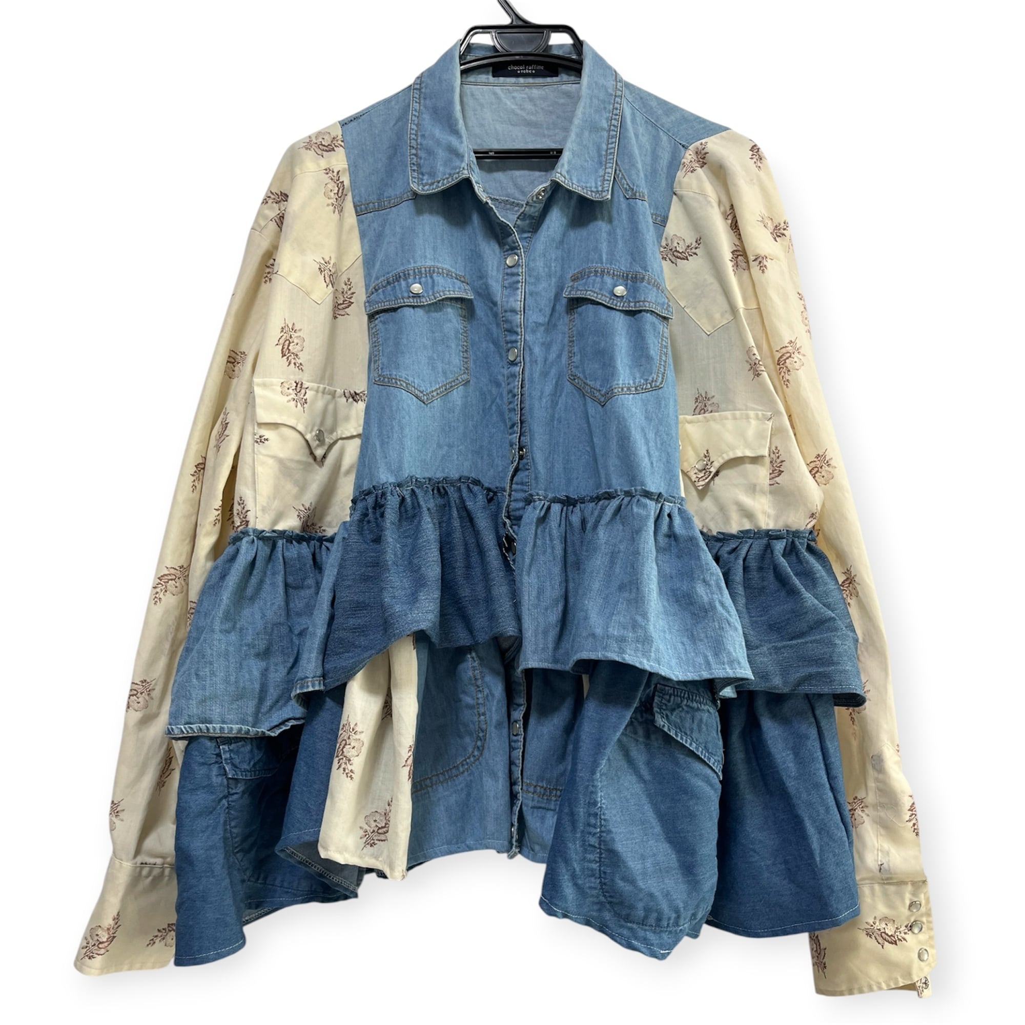denimドッキングフリルシャツ